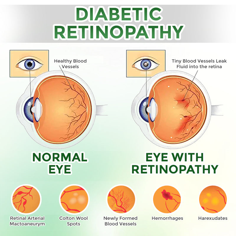 Diabetic Retinopathy: Uncontrolled blood sugar damages the tiny blood vessels in the retina, leading to leakage, bleeding, and abnormal new vessels — causing irreversible vision loss.